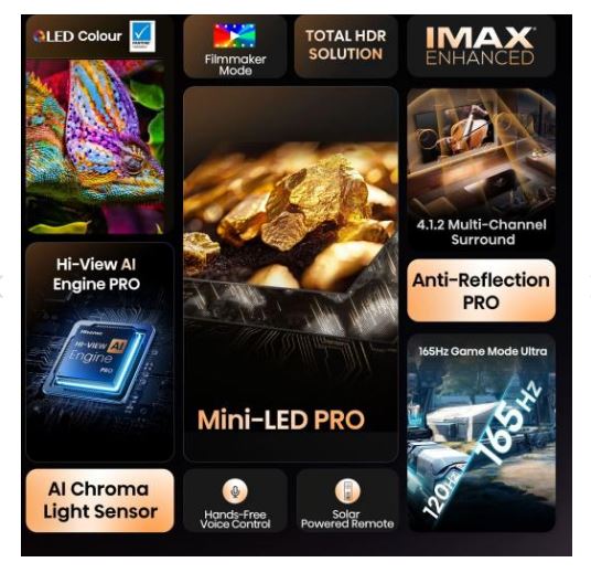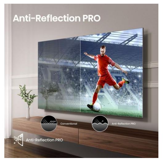 Ne glede na to, ali je soba osvetljena s soncem ali nočno svetilko, odsevi ne motijo več vašega pogleda. Hisense Anti-Reflection PRO odpravlja moteče bleščanje in zagotavlja, da zaslon prikazuje točno tisto, kar mora: čisto kinematografsko briljantnost.