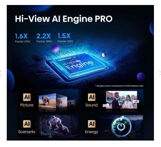 Televizorji Hisense se ponašajo z naprednimi tehnologijami umetne inteligence za zaznavanje in izboljšanje kontrasta. Vsebine SDR je mogoče izboljšati do kakovosti HDR z odličnimi podrobnostmi, bogatimi barvami in globokim kontrastom.