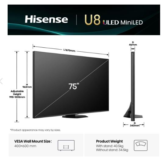 HISENSE 75U8Q ULED Mini Led 4K TV